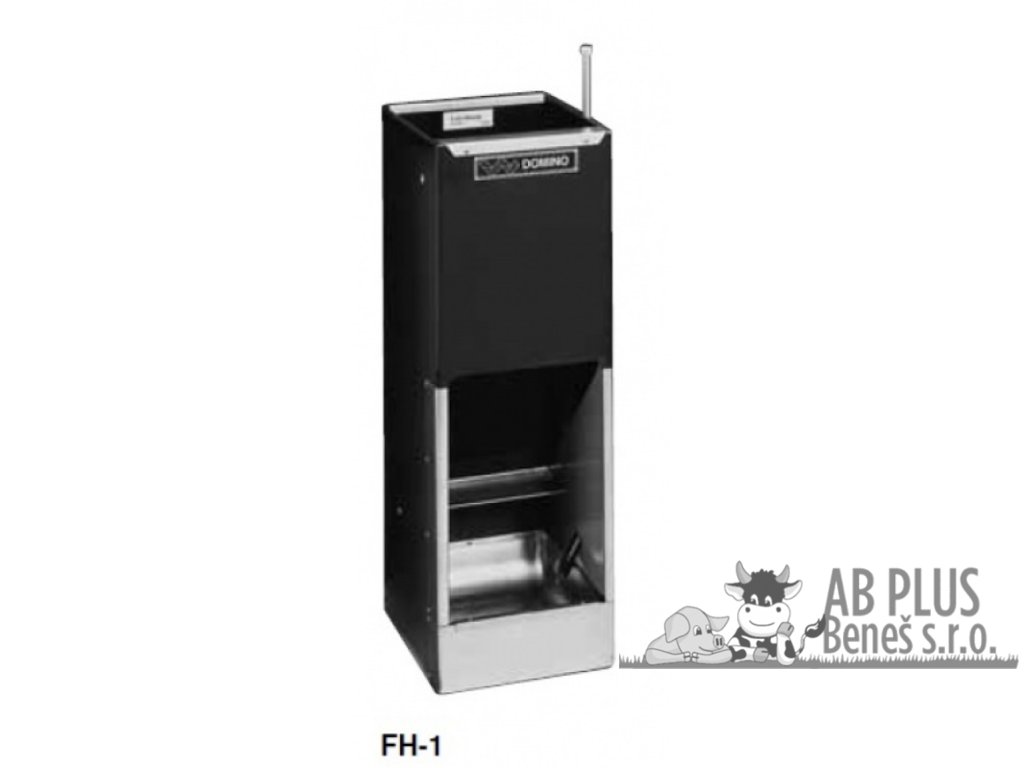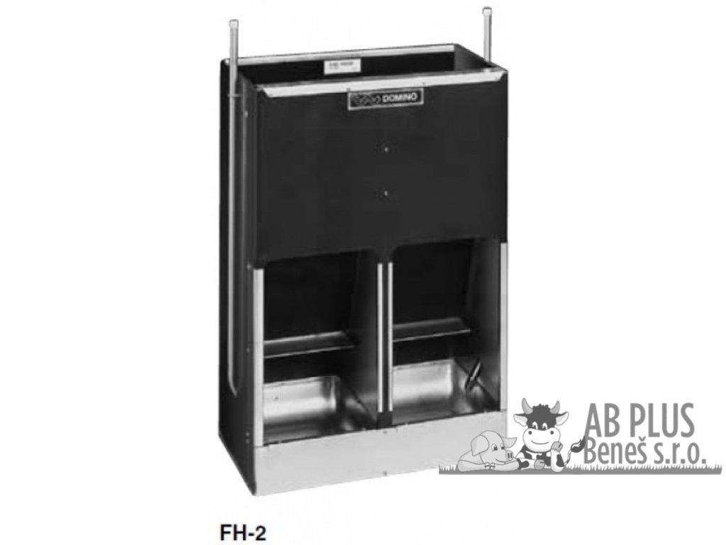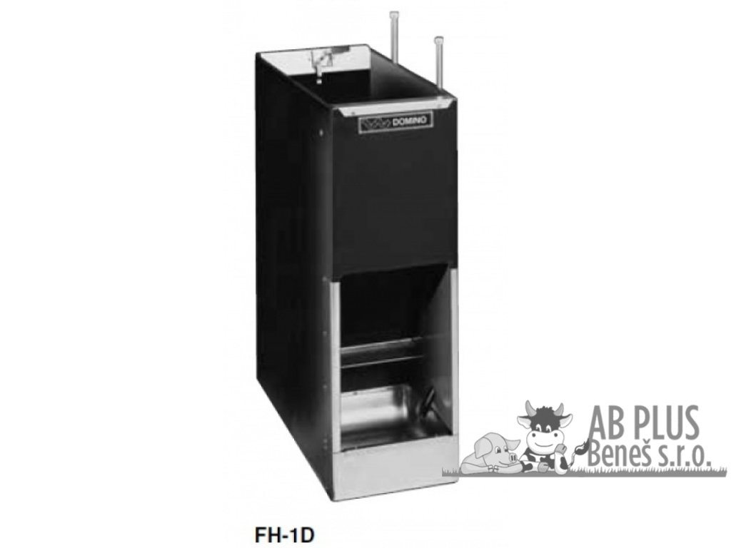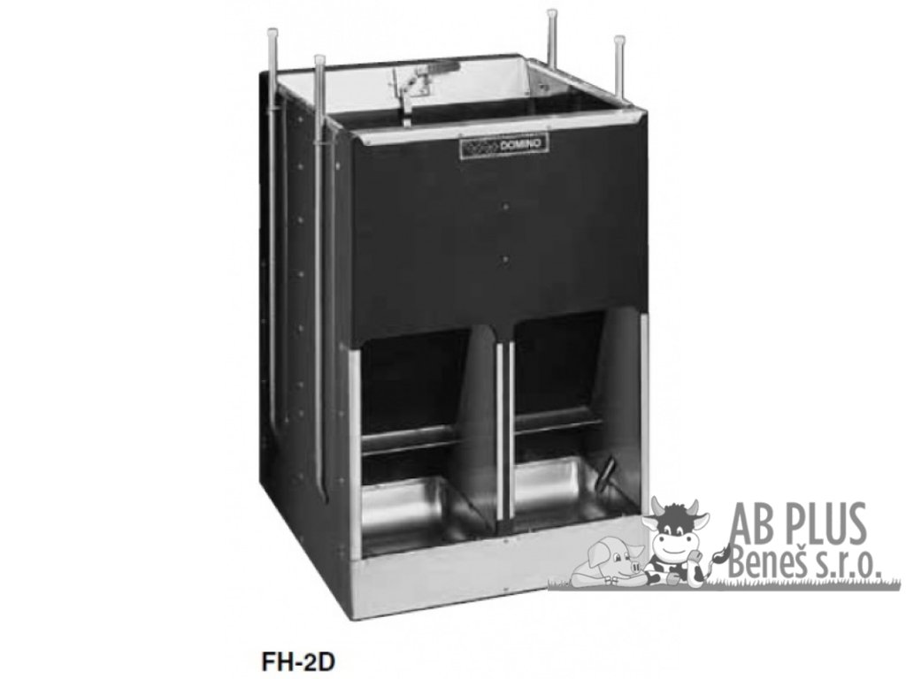 Automatické krmítko Domino Mixer pro výkrm prasat se systémem zvlhčování krmiva. Krmítka pro prasata vhodná od 25 kg do porážkové hmotnosti. Krmný systém krmítka Mixer umožňuje praseti volbu mezi suchým krmivem, vodou nebo mixem. mechanická krmítka Mixer se systémem zvlhčování krmiva, 1/2” závitpodavač krmiva na principu naklepávací destičkyvhodné pro výkrm prasat - od 25 kg oddělená krmná místa s nerezovým korytemprase volí mezi suchým krmivem, vodou nebo mixemvyrobeno z vysoce odolných materiálů - plast, nerezbez ostrých hrankompletně sestavené vhodné k okamžité instalaci krmené koryto je umístěno ve výšce 13 cm Leták s technickými parametry najdete ke stažení ZDE. Zboží na zakázku. Vážení zákazníci, tento výrobek je vyráběn a dodáván na zakázku. Z tohoto důvodu bude při objednání tohoto výrobku objednateli zaslána částečná zálohová faktura a po její úhradě bude zahájena výroba. Přibližný termín dodání: do 10 dnů Tabulka variant samokrmítek Mixer FH (od 25 kg): kat. č. typ počet koryt počet prasat rozměry (v x š x h) obsah zásobníku 1522 FH-1 1 12 100 x 35 x 35 cm 35 l / 25 kg 1523 FH-2 2 24 100 x 68,5 x 35 cm 70 l / 50 kg 1524 FH-1 D 2 x 124 100 x 35 x 70 cm 70 l / 50 kg 1525 FH-2 D 2 x 2 48 100 x 68,5x 70 cm 140 l / 100 kgDiskuze