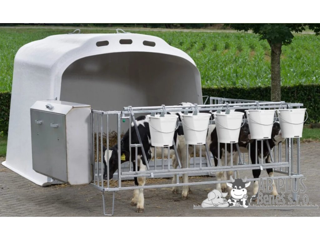 Držák na pět napájecích kbelíků k boudám Calfotel XL5 a Calfotel XL10. Držák je vybaven patentovanou sponou, kdy je fixován jak spodní, tak i dolní okraj kbelíku, a tele s nim nemá možnost pohnout. Použití držáku vede k lepší hygieně a usnadní práci. Držák na kbelík je vhodný na všechny typy napájecích kbelíků pro telata dodávané firmou SELKO.