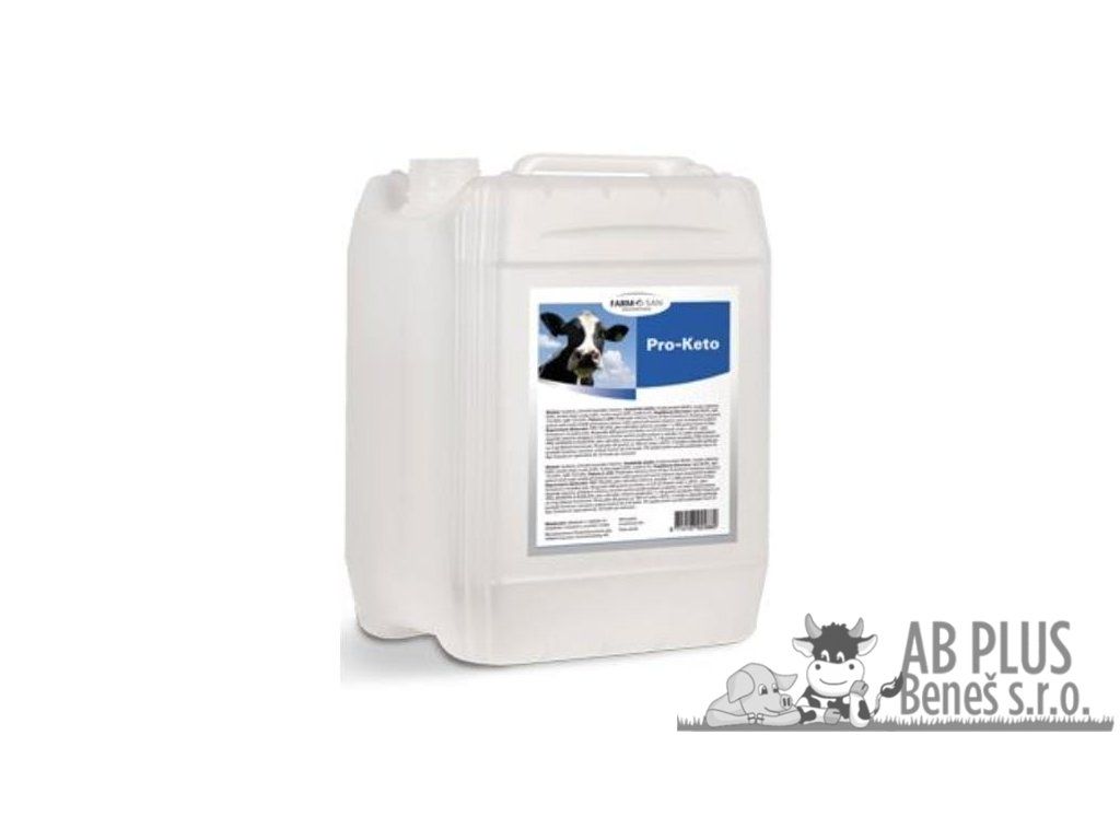 Farm-O-San ProKeto je speciální přípravek na bázi propylenglykolu, který dodává glykogenní energii na podporu vysoké produkce mléka a snižuje riziko ketózy. Navíc obsahuje vitamíny skupiny B (niacin, B12, cholin) na podporu energetického metabolismu a vitamín E pro požadovanou úroveň reprodukce. Zlepšuje metabolismus energie.