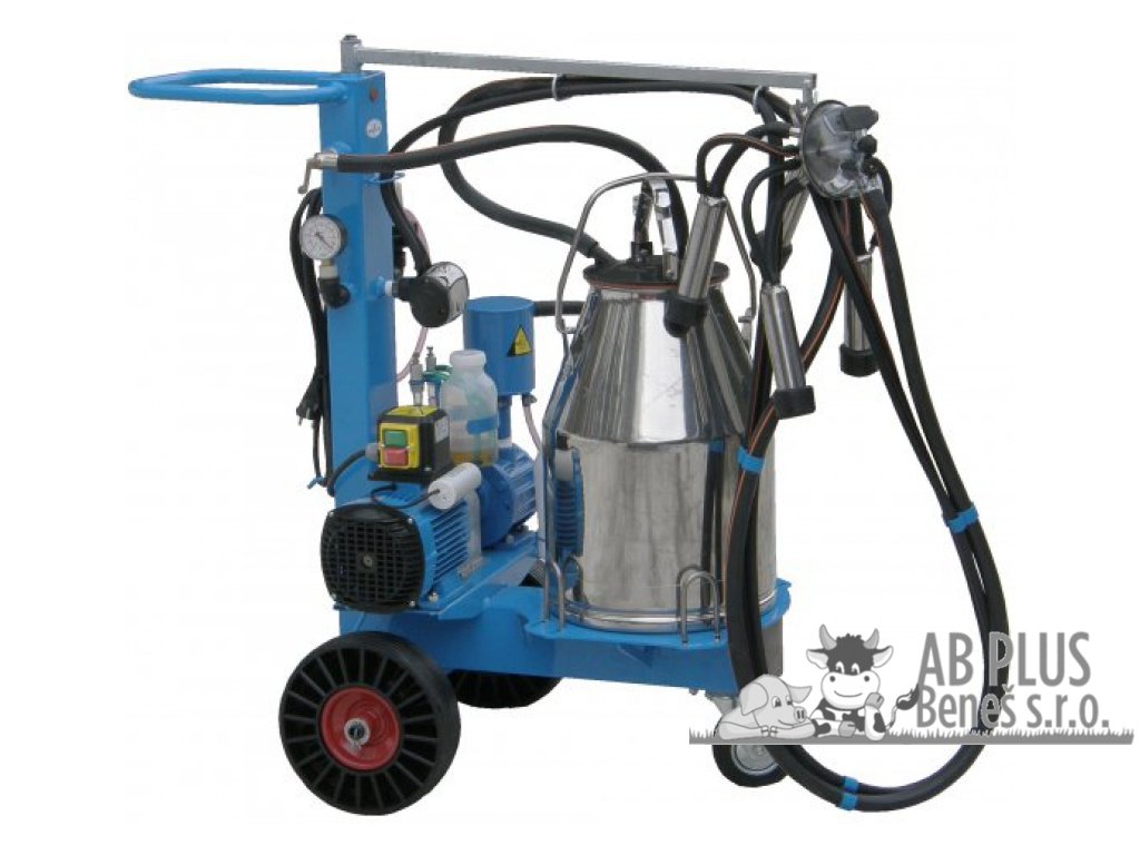 - Vozík je určen pro jednu konev, rám je svařený z profilu jekl do tvaru L a je uložen na třech kolech. Dvě kola jsou vzadu na oji rámu a třetí je otočné v přední části. Součástí rámu je variabilní adaptér umožňující použití různých konví. Na vozíku je fréma s vývěvou a motorem. Vývěva je propojena s rámem, který slouží jako vzdušník, ten je velmi důležitý pro stabilizaci podtlaku. Na tomto rámu jsou přípojná místa pro vakuový kohout, vakuometr, pulzátor a regulační ventil. Na vrchní části je otočné rameno pro vedení hadic a zavěšení dojícího stroje.