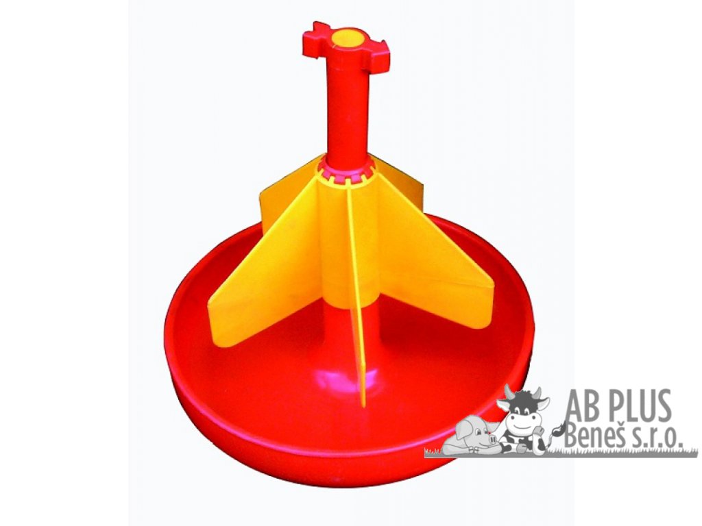 Krmná miska k předkládání krmné směsi případně mléka selatům již v porodním kotci. Miska je vybavena kotvou pro snadné uchycení na rošt. Plastová rozeta vymezuje pět krmných míst.