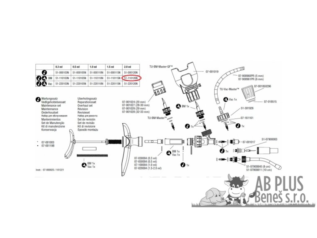 Náhradní díly a příslušenství k TU-Masteru.